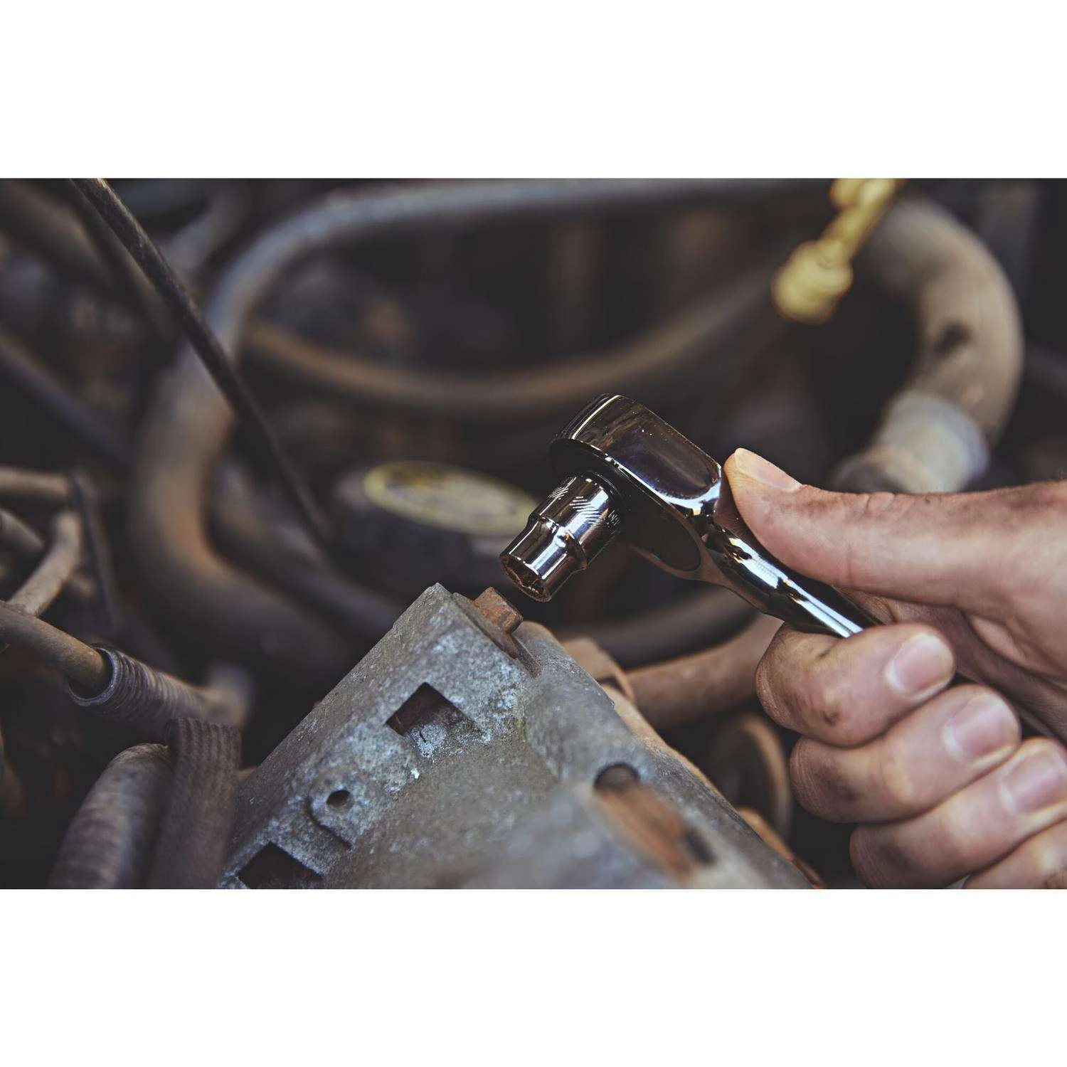Access hard-to-reach fasteners with this 3/8 in. Drive 180T OVERDRIVE Ratchet that features 2.5X better access in tight areas. With a quick-release lever and comfortable handle, this reliable ratchet offers one-handed operation for all-day jobs. 2.5X BETTER ACCESS – Reach compact areas with a 180-Tooth Dual-Pawl Mechanism that provides 2.5X better access for tight turns. ONE-HANDED OPERATION – Keep one hand free for work with a quick-release lever and reversing feature. DURABLE DESIGN – Take on harsh elements with an enhanced dual-pawl mechanism that increases points of engagement. COMFORTABLE USE – Work long hours with an ergonomically designed comfort-handle. SLEEK, MODERN FINISH – Get stellar rust resistance with a gunmetal-chrome finish. MEETS OR EXCEEDS ASME SPECIFICATIONS – These products are engineered to meet rigorous standards and satisfy the most demanding users.