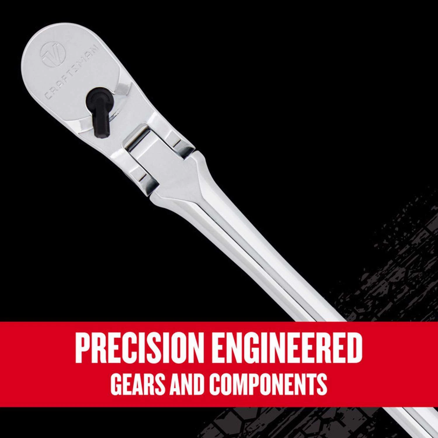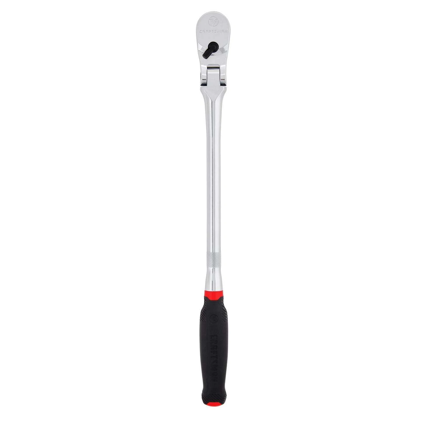 Get the reliability you need with this V-Seriesâ„¢ 1/2 in. Drive Comfort Grip Long Flex Head Ratchet. The ratchet offers high-end performance and endurance for challenging projects with a precision-engineered gear for optimized usability. Reach difficult-to-access areas with a 3-3/4 degree arc swing without sacrificing grip strength with its 96-tooth design and lessen hand strain when working long hours with this tool’s comfortable grip. ACCESS CONFINED SPACES with 3-3/4 deg arc swing MAINTAIN PRODUCTIVITY with a 180 deg Articulating Head that helps you grip hard-to-reach fasteners COMFORTABLE GRIP: Bi-material handle lessens hand strain PREVENT UNINTENTIONAL SWITCHING with low-profile steering lever BACKED BY A LIFETIME WARRANTY: Designed to deliver the quality and durability expected from the CRAFTSMAN brand – if the product fails to perform, we’ll replace it