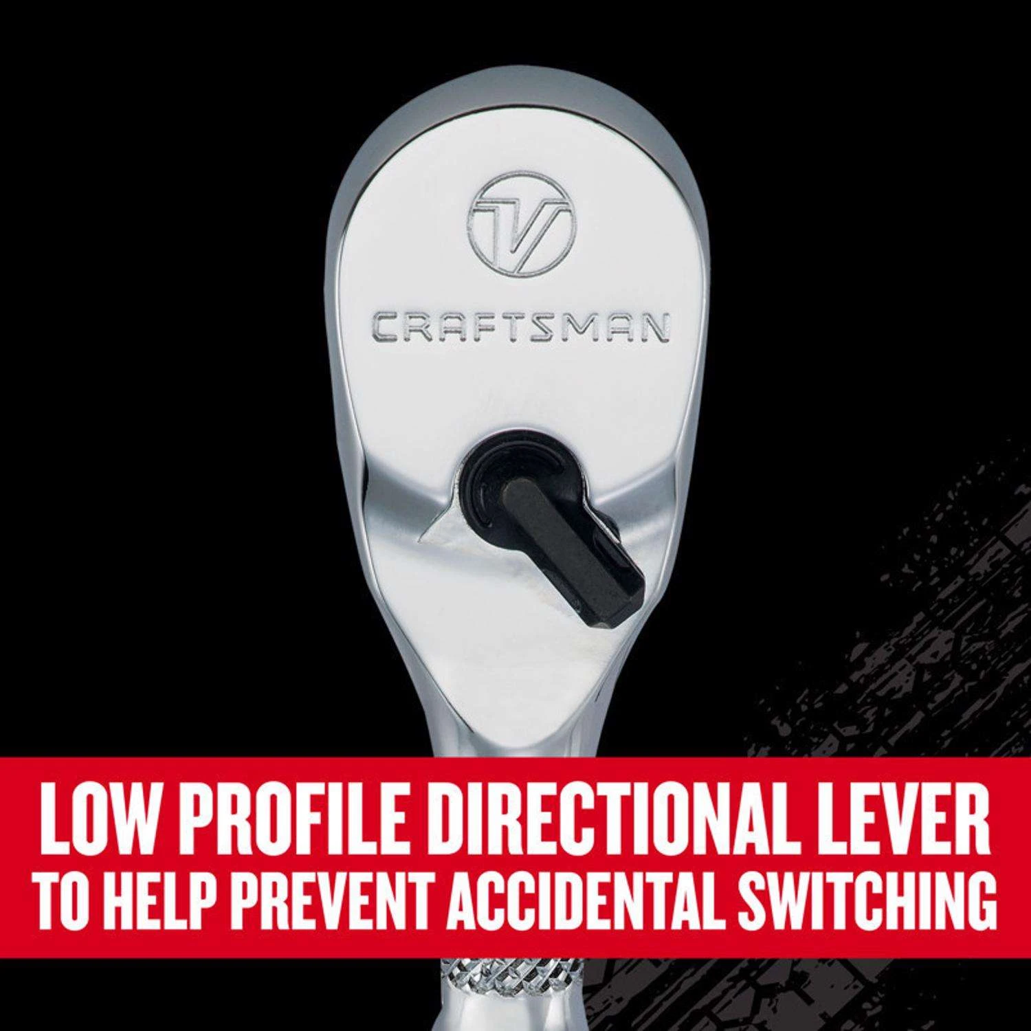 Tackle demanding work with this expert-tested V-Series™ 1/4 in. Drive Ratchet. Designed for professionals, this ratchet provides you with enhanced tool life and durability with a precision-engineered gear. Easily access tight spaces without sacrificing strength with this tool’s 80-tooth design that produces a short 4-1/2 arc swing. ACCESS CONFINED SPACES with 4-1/2 deg arc swing HIGH EASE OF USE: Low-profile directional lever helps prevent accidental switching BUILT FOR STRENGTH AND DURABILITY with precision-engineered gears PREVENTS DAMAGE FROM DIRT infiltration with enclosed head design BACKED BY A LIFETIME WARRANTY: Designed to deliver the quality and durability expected from the CRAFTSMAN brand – if the product fails to perform, we’ll replace it