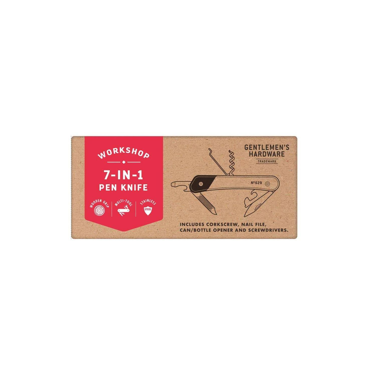 7-in-1Pen Knife Multi-Tool with wooden handle. Includes 7 stainless steel tools corkscrew can/bottle opener 3mm/5mm flat head screwdrivers and nail file. Titanium finish. Packaged in gift box. Coated in titanium for extra toughness, this is one pen knife you’ll keep forever Multi-tools eliminate the need to select and purchase separate tools Multi-tools are easy to access and use