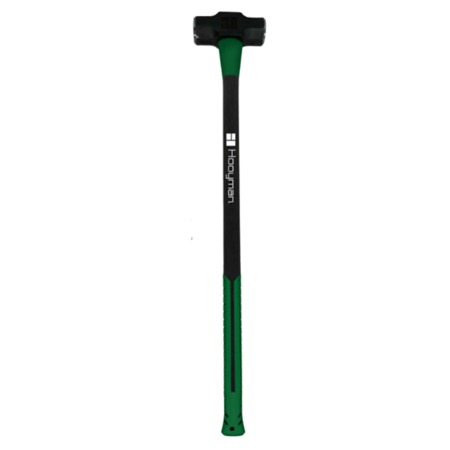 Get power, strength and durability with the 8lb sledge hammer from Hooyman. The head is constructed of 8 pounds of 1045 high strength steel. Get a good grip on each swing with the ergonomic, signature green non-slip h-grip handle that surrounds a reinforced fiberglass core. Store easily in your shed or workshop with the handle peg hole. Handle peg hole for easy storage 1045 high strength steel Reinforced, fiberglass core handle – ergonomic, non-slip h-grip handle Modern aesthetic design Measures 35.25 L x 6.25 W x 2.25 D and weighs 8 lbs Get a good grip on each swing with the ergonomic, signature green No Slip H-GRIP handle that surrounds a reinforced fiberglass core Store our large sledge hammers easily in your shed or workshop with the handle peg hole Get power, strength, and durability with the Sledge and Club Hammers from Hooyman