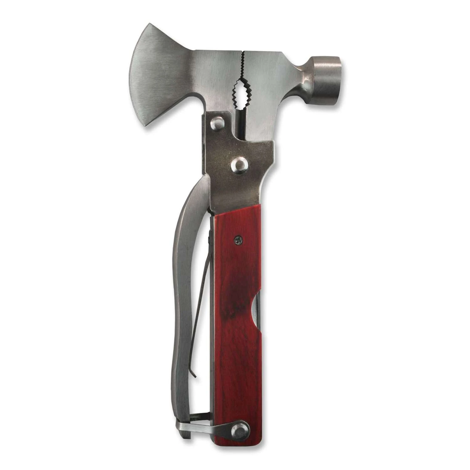 The Axe Multi-Tool may be compact, but it’s mighty! Ideal for camping, fishing or any number of small home DIY projects. Be prepared for just about any emergency with this tool. Camping tool With over 15 functions, this is a great gift item for the outdoorsman 420 Stainless steel, with rosewood handle